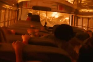 Le matin du jeudi 8 novembre 2018, une ligne électrique défectueuse déclenche l’incendie le plus meurtrier de l’histoire de la Californie. Le brasier fait rage dès son démarrage à Camp Creek Road (d’où le nom du feu : Camp Fire) et se propage rapidement dans le comté de Butte. Il engloutit la ville de Paradise et dévaste les communautés de Magalia et Concow. Au cours de l’évacuation de Paradise, le chauffeur de bus Kevin McKay et l’institutrice Mary Ludwig se retrouvent à bord d’un autobus scolaire transportant 22 jeunes enfants à travers les flammes.